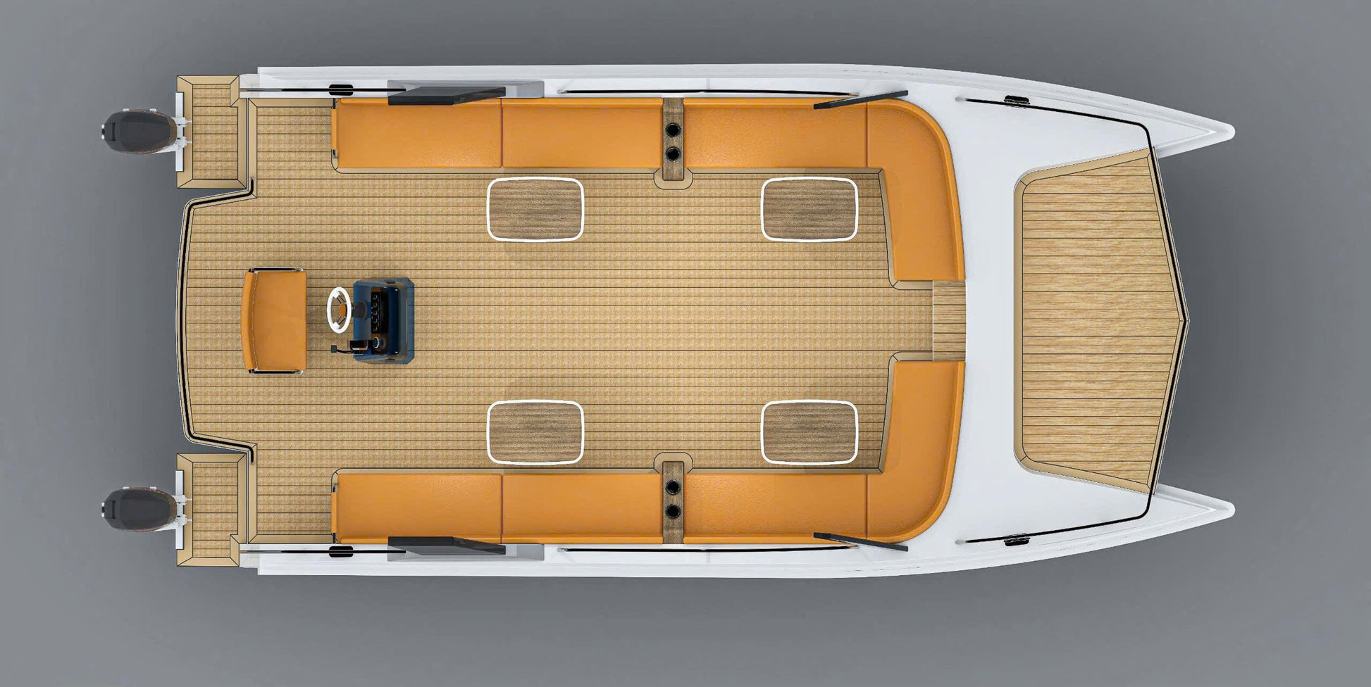 The 26.7 ft Electric Catamaran is thoughtfully designed for eco-conscious cruising without compromising comfort or style. Powered by dual 5 kW Torqeedo electric motors, it delivers a smooth, quiet, and emissions-free ride—making it an ideal choice for eco-resorts, scenic lake tours, and private leisure cruises where sustainability and elegance take center stage.