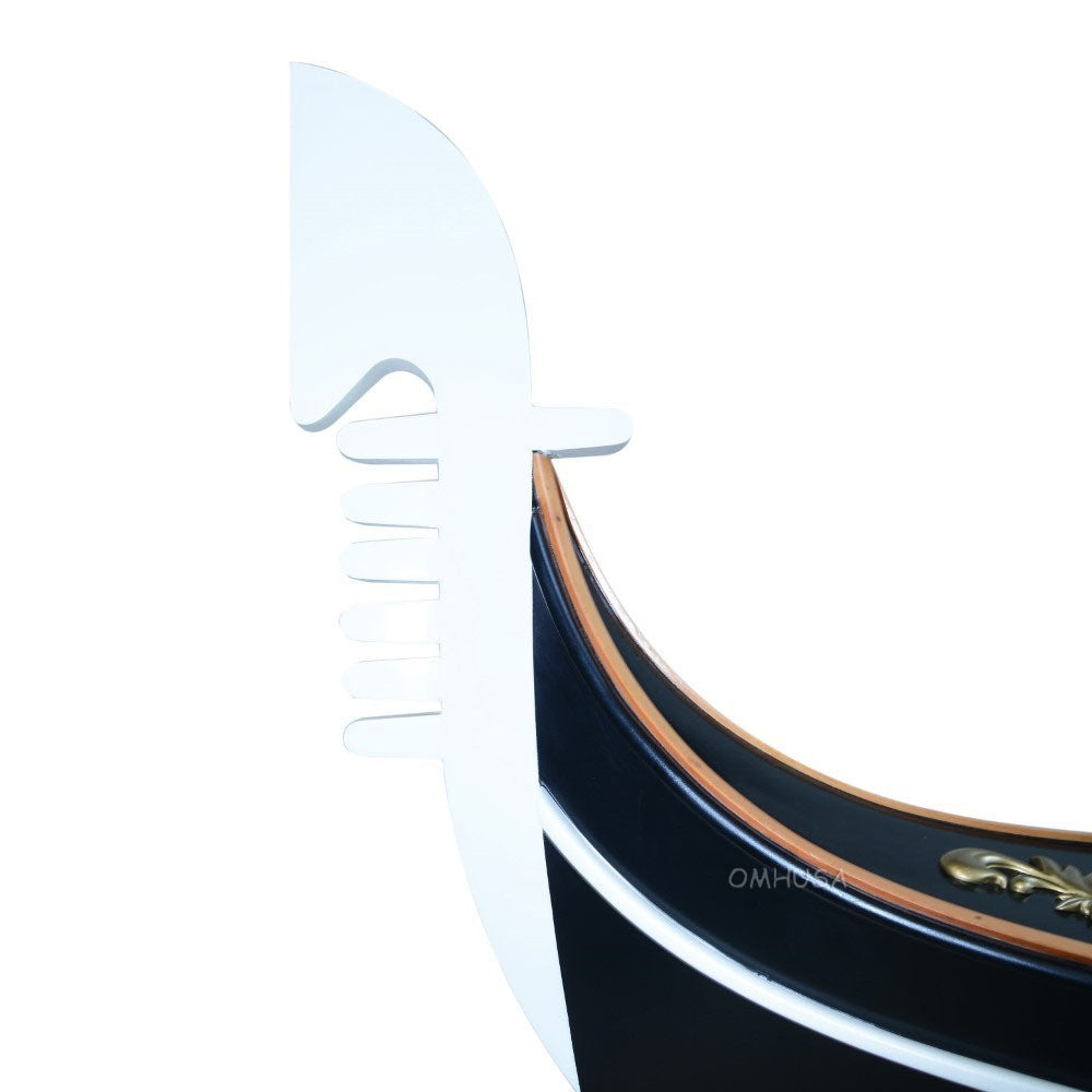 This Venetian Gondola wooden boat is fully functional at 14 feet long and beautifully painted in its original color black with white stripe. We also have a 24 and 36 feet long gondola available, upon request. This boat was completely handcrafted and takes about 600-800 hours to build. We still use the traditional method of construction while integrating the highest quality of materials currently available. Strips of red cedars are joined together by hand and then encapsulated in fiberglass bonded in place with epoxy resin then coated with marine vanish. This combination of fiberglass and epoxy is very strong and the wood will be protected for generations.
