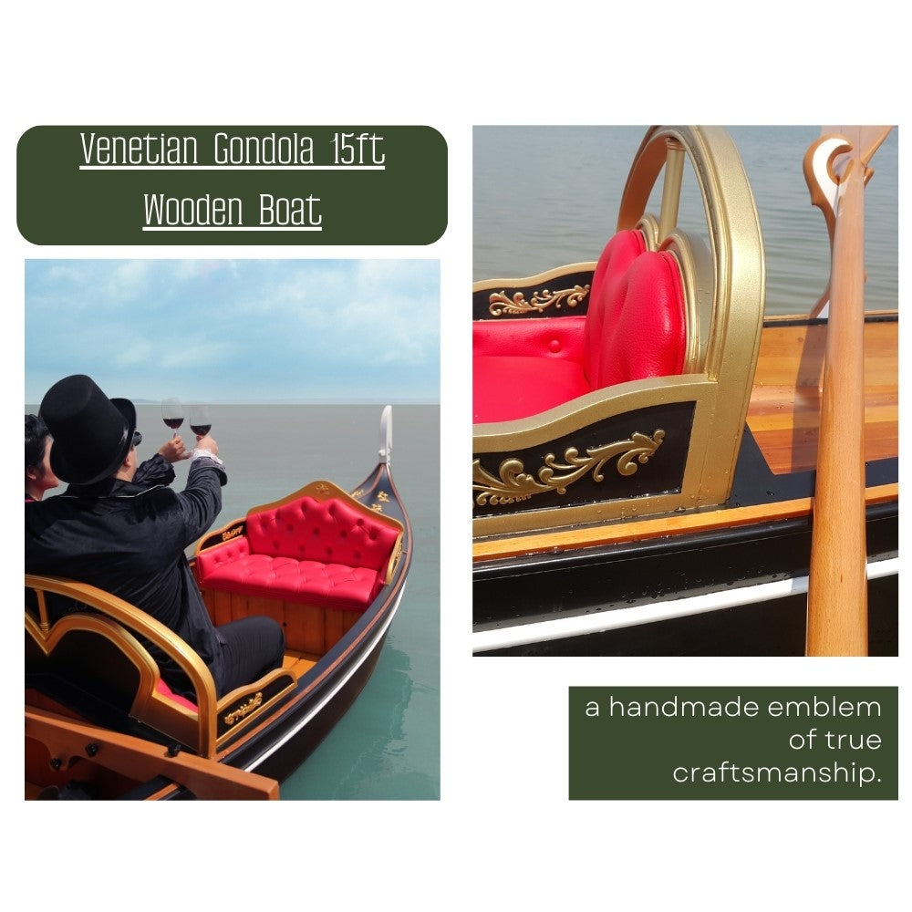 Immerse yourself in the enchanting ambiance of our 15ft Gondola and create treasured moments on the water. Explore our collection now and witness the artistry behind these meticulously crafted vessels. Let the intimate charm of our wooden Gondola transport you to a world of romance, tranquility, and unforgettable memories.